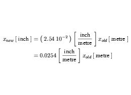 The definition of inch in Figure 17 is a simple units definition as it references only a single unit with an exponent of one. When the appropriate terms are substituted into Equation 3, the conversion from metre to inch is given by Equation 23. metre is a SI base unit, so no further expansion is necessary.