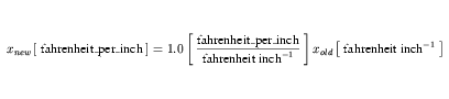 znew from Equation 37 can be substituted into Equation 34 in place of xold and the result simplified to give the complete expansion of fahrenheit_per_inch in Equation 38.